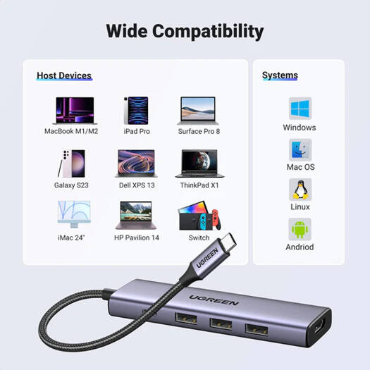 - Ultra Slim Design: Weighing just 76g and measuring 16mm thin, the UGREEN USB-C Hub is ideal for on-the-go productivity.